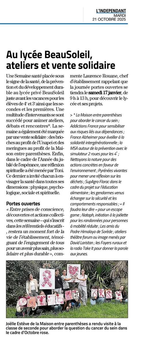 Opération Sentinelles et référents au Lycée Beausoleil 2023
