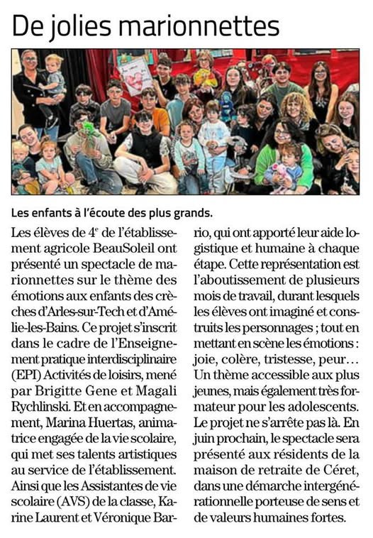 Spectacle de marionnettes par les élèves de 4ème 2025